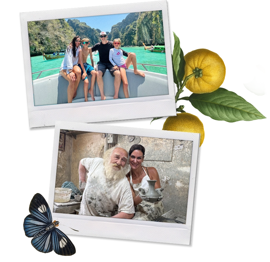 Each destination holds a special memory, but the moments I treasure most are those spent discovering the world with my children—and deeply connecting with locals along the way. From boarding the Polar Express in Lapland, Finland to meet Santa, to watching my kids learn to water ski along the French Riviera where the sport was born, our travels have been filled with magic and discovery. Summers in Spain bring cliff-jumping adventures in Mallorca, while Greece offers the warmth of philoxenia and laughter shared over raki with Santorini potter Andreas Makaris. Each journey reminds me that travel isn’t just about where we go, but how deeply we experience and connect with the world around us.